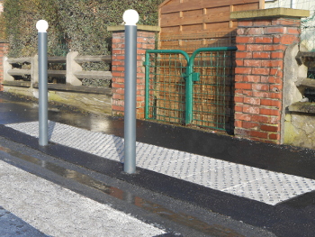Les dalles sont généralement posées en bande d’éveil de vigilance adaptée à l’usage (ERP, quais, passages piétons).