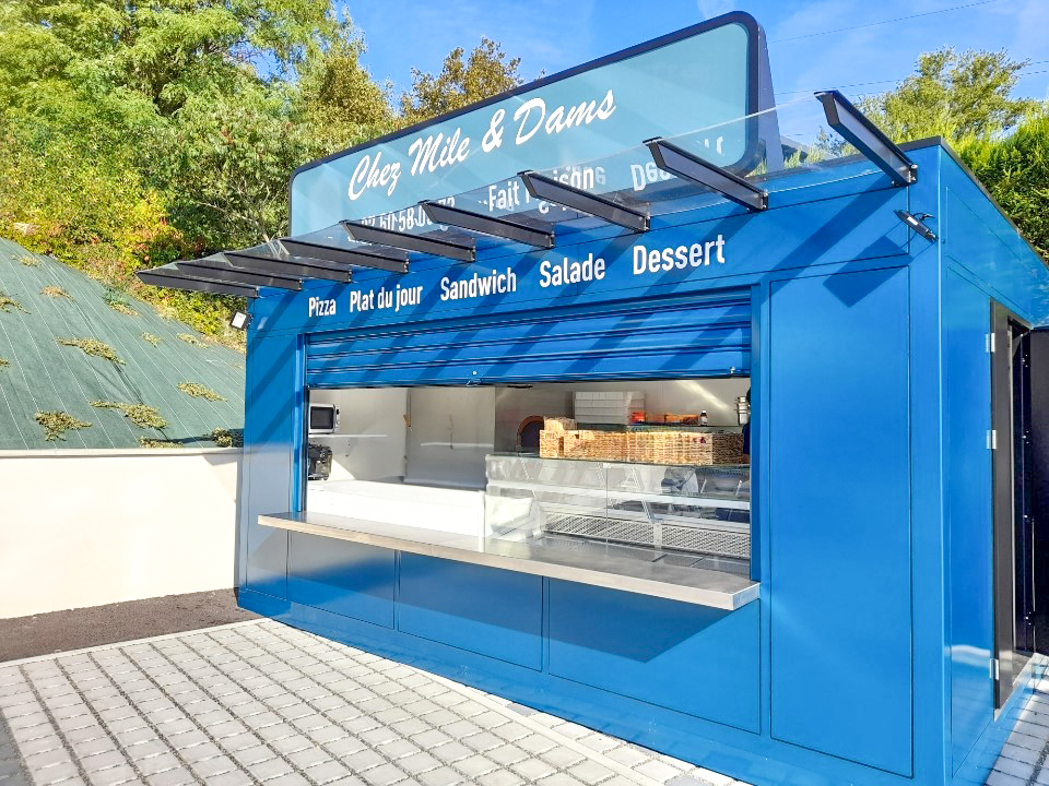 Enfin, nos kiosques mobiles clés-en-mains de 9,08m² sont déplaçables à l’aide d’une remorque, parfaits pour changer facilement de lieu d’implantation.